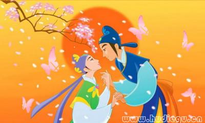 “Ach so! ich verstehe. Yingtai und ihre Schwester sind eigentlich ein Person. Drei Jahre, wie dumm ich bin, kann ich die Tatsache nicht bemerken. Gut! …” jetzt stürzt sich Shanbo völlig in Freude, “Yingtai ist die Vermittlerin von sich selbst gewesen.”